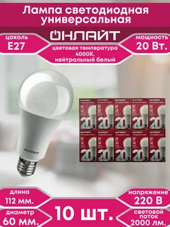 Лампочка e27 светодиодная груша 20Вт.нейтрально белый 10 шт