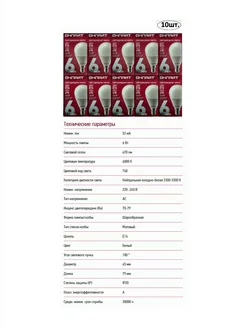 Лампочка Е14 светодиодная шар 6 Вт.нейтральный белый 10 шт