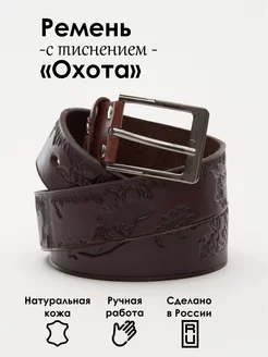 Ремень кожаный с тиснением "Охота" коричневый