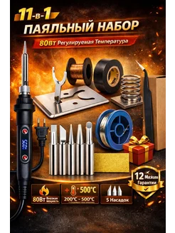 Паяльный набор 11 в 1 с регулируемой температурой 80Вт