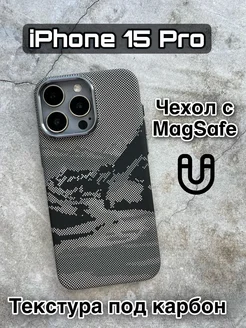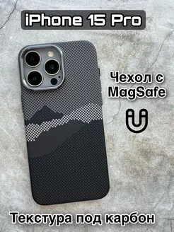 Чехол с MagSafe на iPhone 15 Pro текстура под карбон