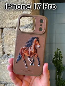 Чехол кожаный для iPhone 17 ProMax с вышивкой