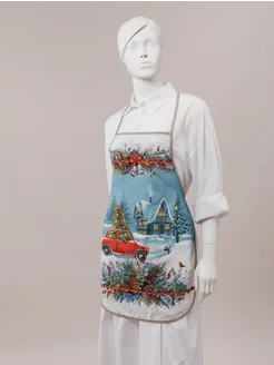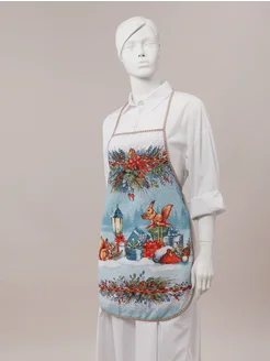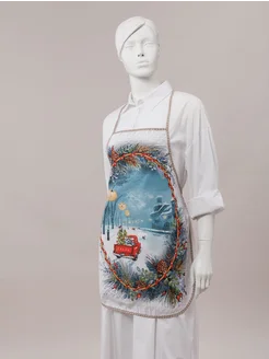 Новогодний набор "Лапландия" с кухонным фартуком из рогожки