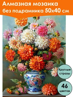 Алмазная мозаика без подрамника «Георгины» 50x40 см