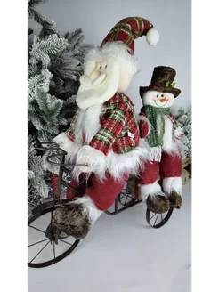 Композиция под елку Дед Мороз и Снеговик на велосипеде