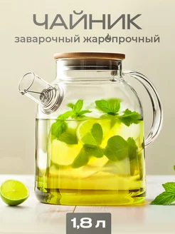 Заварочный чайник стеклянный с крышкой и ситечком 1800мл