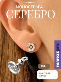 Моносерьга серебро 925 одиночная сережка гвоздик