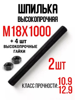 Шпилька (штанга) резьбовая М18х1000 высокопроч 2шт + 4 гайки