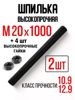 Шпилька (штанга) резьбовая М20х1000 высокопроч 2шт + 4 гайки