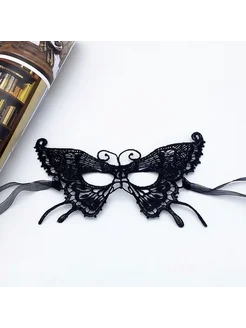 Карнавальная кружевная маска на глаза ажурная чёрная