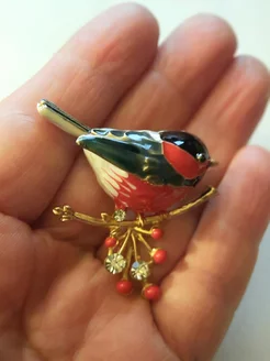 Брошь бижутерия Снегирь