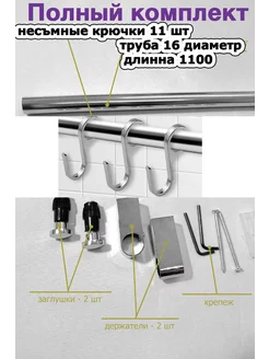 Рейлинг для кухни и держатель с несъёмными крючками110см