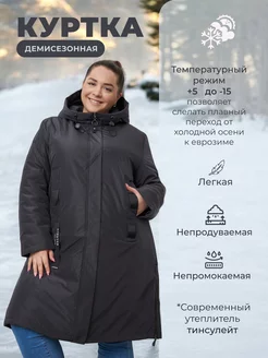 Куртка демисезонная больших размеров удлиненная с капюшоном