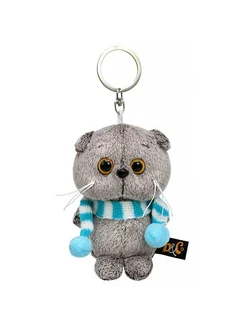 Брелок Кот Басик в полосатом шарфе, с кольцом, 12 см