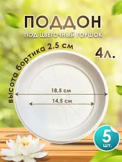 Поддон для горшка пластик набор 5 шт круглый с бортиками