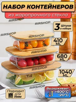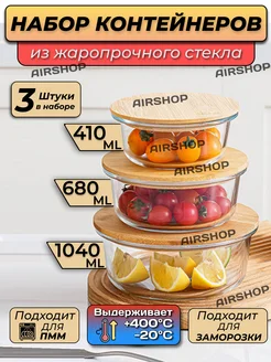Контейнер стеклянный с крышкой для еды 3шт