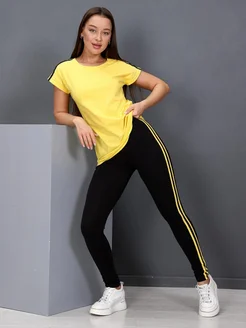 Спортивный костюм женский с брюками леггинсы и футболкой