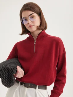 Свитер поло оверсайз с горлом на молнии вязаный теплый зима