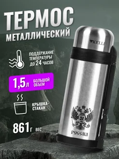 Термос для чая, кофе и воды металлический походный 1,5 л