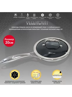 Сковорода из нержавеющей стали с крышкой, 20 см