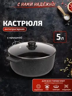 Кастрюля 5 литров с крышкой стекло антипригарная