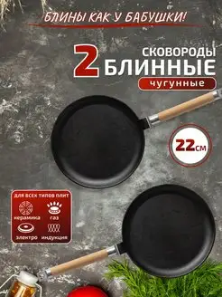 Сковорода блинная чугунная для индукционных плит 2 штуки