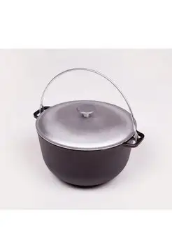 Казан чугунный 12 литров с крышкой круглое дно походный