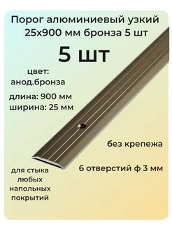 Порог алюминиевый для пола узкий 25 мм бронза 5 шт