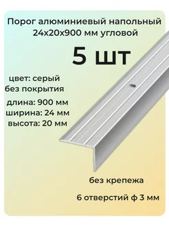 Порог угловой алюминиевый для пола 24х20 мм 5 шт