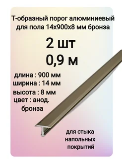 Т-образный порог алюминиевый 14х900х8 мм бронза 2 шт