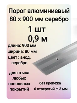 Порог алюминиевый широкий 80х900 мм серебро 1 шт
