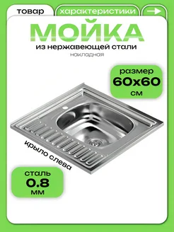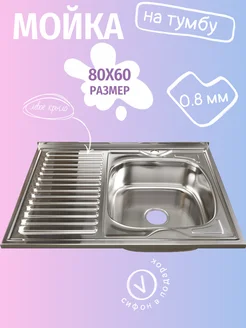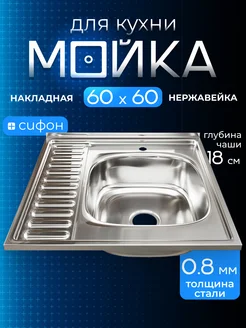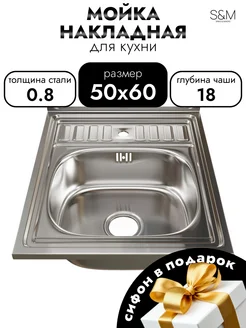 Раковина для кухни из нержавейки 50*60 с сифоном S&M08