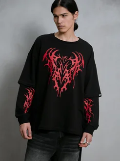 Оверсайз лонгслив с двойным рукавом принтом Y2k