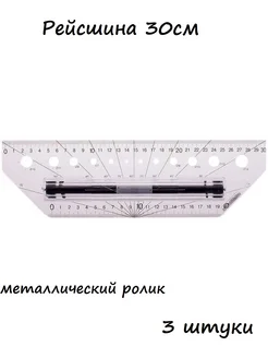 3 шт - Рейсшина 30см металлический ролик