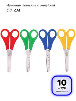 (10 штук) - Ножницы детские с линейкой 13 см, арт. 254636