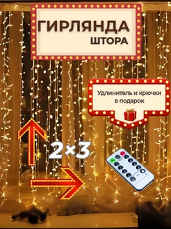Гирлянда штора 3х2 с пультом занавес на окно новогодняя