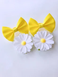 резинки для волос бантики желтые ромашки