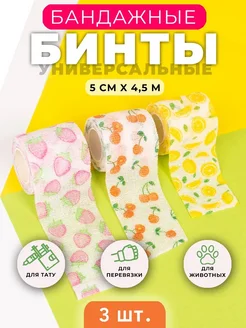 Эластичный бинт самофиксирующийся бандажный тату 3 шт