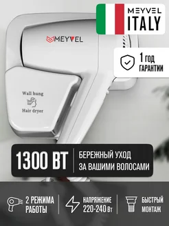 Фен настенный для волос с держателем MF4-1300 (White)