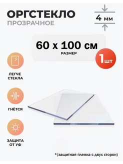 Оргстекло Монолитный поликарбонат прозрачное 60х100см 4мм