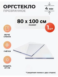 Оргстекло Монолитный поликарбонат прозрачное 80х100см 4мм