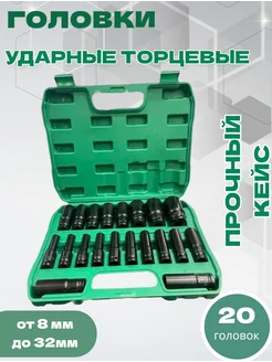 Набор торцевых ударных головок. Набор автомобилиста, 20 шт