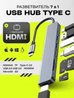 Usb hub type C 7 в 1 с HDMI для Macbook и ноутбуков