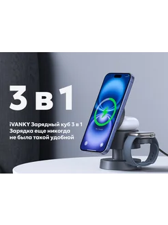 Беспроводная зарядка универсальная 3 в 1 Куб