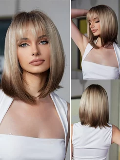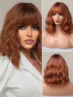 Короткий парик с челкой искусственные волосы