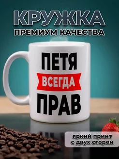 Кружка именная Петя всегда прав с приколом