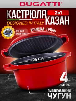 Кастрюля чугунная с крышкой гриль и эмалевым покрытием 4 л