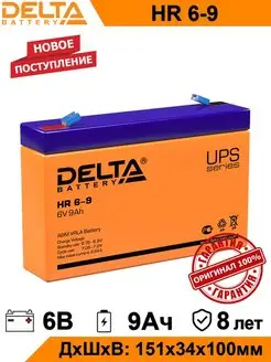 Аккумулятор Delta HR 6-9 6V 9Ah AGM