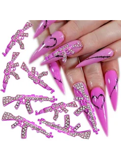 Фигурки для маникюра пистолеты со стразами(10шт), Розовый