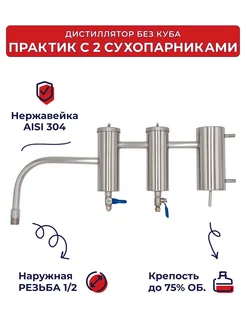 Дистиллятор без куба с 2 сухопарниками 1 2 дюйма нар. резьба